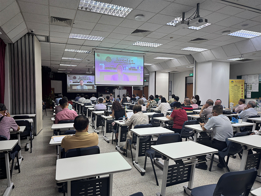 会上,新加坡中医学院原院长戴铭通过视频方式发表讲话。他回顾了在学院工作的点滴历程,感谢董事会长期以来的信任与支持,并对全体同事的责任感与凝聚力表示由衷敬意。戴原院长表示,虽不再担任院长职务,但将持续关注学院发展,衷心祝愿学院不断壮大,迈向更高办学目标。