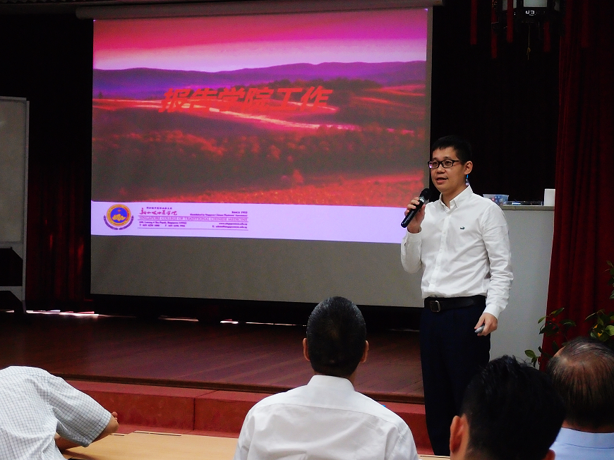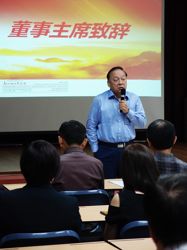 赵英杰董事主席向获得陈树兰奖教金的教职员颁奖,并发表热情洋溢的致辞。他代表学院董事会感谢全体师生员工为学院的发展做出的贡献;回顾了学院66年的发展历程,学院在办学环境艰难的情况下,克服困难,迎接挑战,不断有所发展;指出今年的中医师资格注册考试通过率有一点提高,希望学院采取积极措施,取得更好的教学工作成绩,争取明年注册考的通过率能有进一步提升;吁请老师们为《新加坡中医学院学报》踊跃投稿,积极参加继续教育讲座;各位董事、同仁、教职员,都要为学院的可持续发展多做贡献。