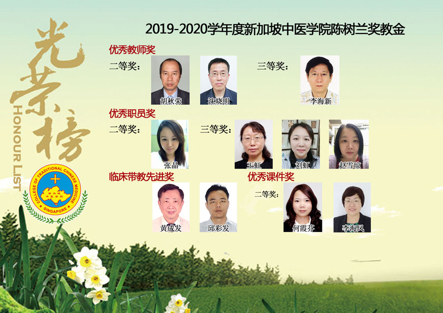 优秀教师二等奖:胡秋荣 全职教师,承担中医内科学、病案学、中医老年病学、各家学说的教学及临床带教。2019/2020学年度,学生对胡老师的教学满意度平均达90分。积极在学报发表论文,为学生开办第二课堂,深受学生欢迎。